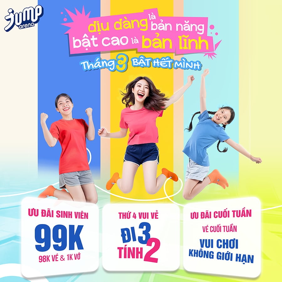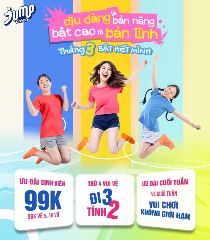 Đặt vé online nhanh chóng, tiện lợi, trải nghiệm khu vui chơi thể thao bạt nhún Jump Arena Trampoline Park lớn nhất Việt Nam trên toàn quốc.