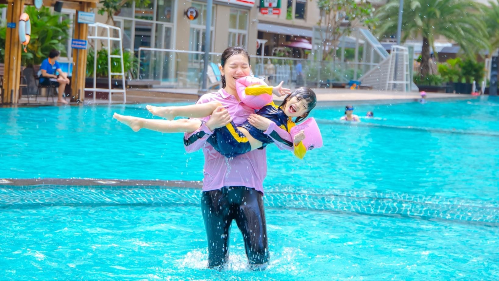 - Tiêu chuẩn: Nước hồ luôn duy trì ở mức 30-31°C, hệ thống lọc muối khoáng giúp bảo vệ hệ hô hấp non nớt của bé.